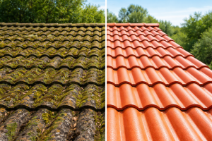 Contrairement aux idées reçues, un nettoyage efficace ne nécessite pas de forte pression. En effet, la vapeur projetée à basse pression agit grâce à sa température élevée, ce qui permet de décoller naturellement les mousses, les lichens et les champignons incrustés dans les pores des tuiles. Ensuite, les racines végétales sont détruites en profondeur, ce qui ralentit considérablement la repousse sans agresser le support. Par conséquent, les tuiles conservent leur intégrité, les joints restent en place et l’étanchéité globale de la toiture est préservée sur le long terme.